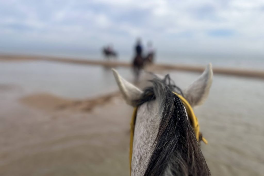 Mindenki izgul még addig egy kicsit, nyűgös is talán ezért, azért, amazért, de ahogy a lova alá kap a szél a lovas megnyugszik, és a lova is elégedetten prüszköl egyet. Ha ez sós vízzel párosul, az az élmény méginkább lélekemelő. Az elsőbálózó tengerparti vágtásokat magával ragadja a rutinosabbak előretörése és csujjogatása ilyenkor, miután néhány rávezető sétakilométer után először vágtatunk végig a tengerparton közösen. Ebből az egészből lesz mindig egy rendkívül boldog, vígkedélyű, gondoktól, problémáktól, elvárásoktól és időtől mentes massza, aminek van egy lüktető ritmusa. Ilyenkor táncraperdül a lélek is, és megszületik a béke.