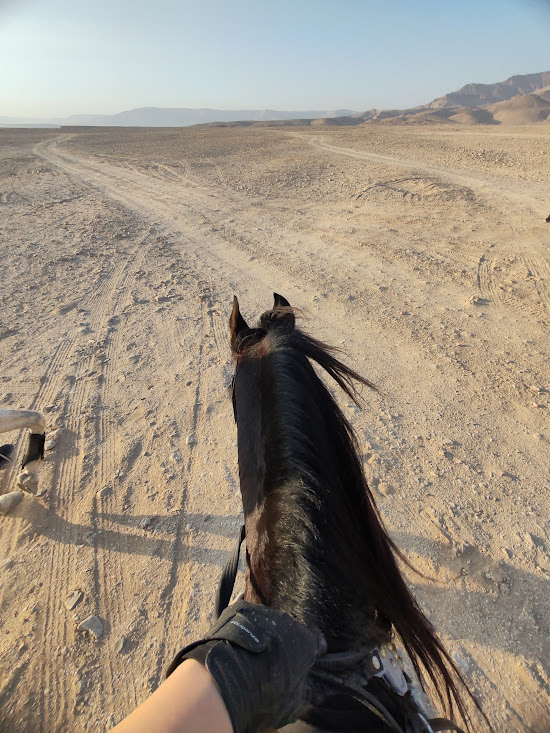 Az élményt megkoronáztuk egy hűs fürdőzéssel, a lovainkkal, együtt úsztunk, lépdeltünk ringatóztunk a Vörös-tenger hullámaiban. Elmondások alapján 11 cápafaj is otthonaként tekint erre a környékre, de most nem nyílt rá lehetőség, hogy ennek az információnak hitelt érdemlően utánajárjunk.