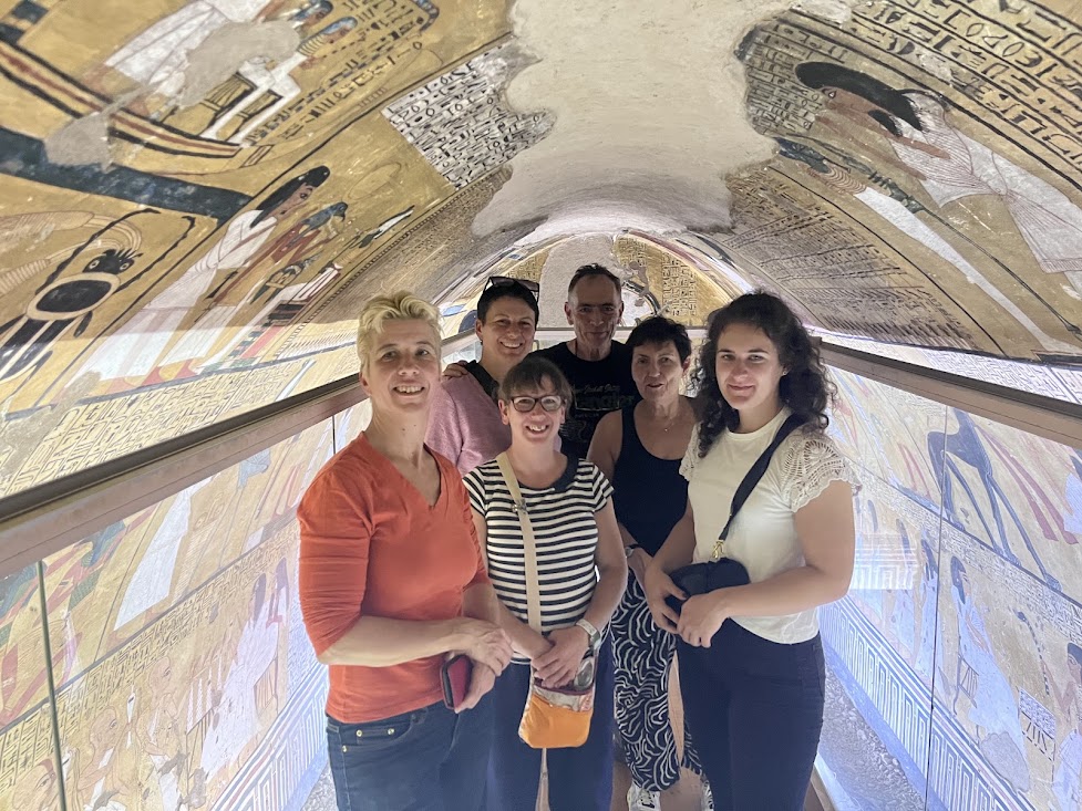 Szűk, gazdagon festett járatokon mászkáltunk a föld alatt órákon át, és próbáltuk befogadni azt a szürreálisnak ható civilizációs örökséget, mely körülvett minket, egyiptológus kísérőnk segítségével.