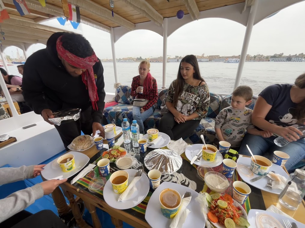 Kétlábon is igyekeztünk egy mély lélegzetet venni a helyi kultúrából, így látogattunk el az ókori világ legnagyobb vallási helyszínére, a Karnaki templomkomplexumba egy felejthetetlen nílusi hajókázást követően. Az AI szerint, nem csak imák, hanem vágtázó lovak patáinak dobogása is visszhangzott valaha a Karnaki templom falai között.